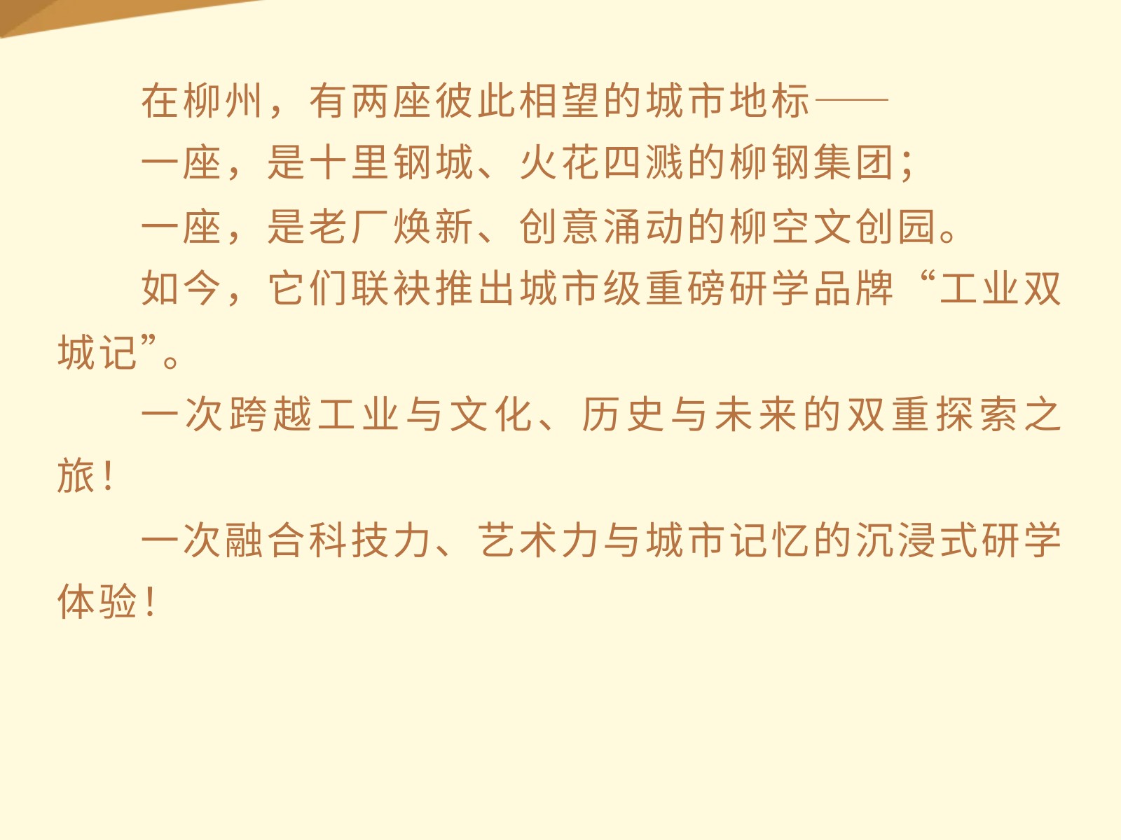 柳鋼+柳空|“工業(yè)雙城記”聯(lián)合研學(xué)品牌震撼上線! 發(fā)布時間:2025年04月25日 16時來源:本站原創(chuàng)瀏覽:55 人次