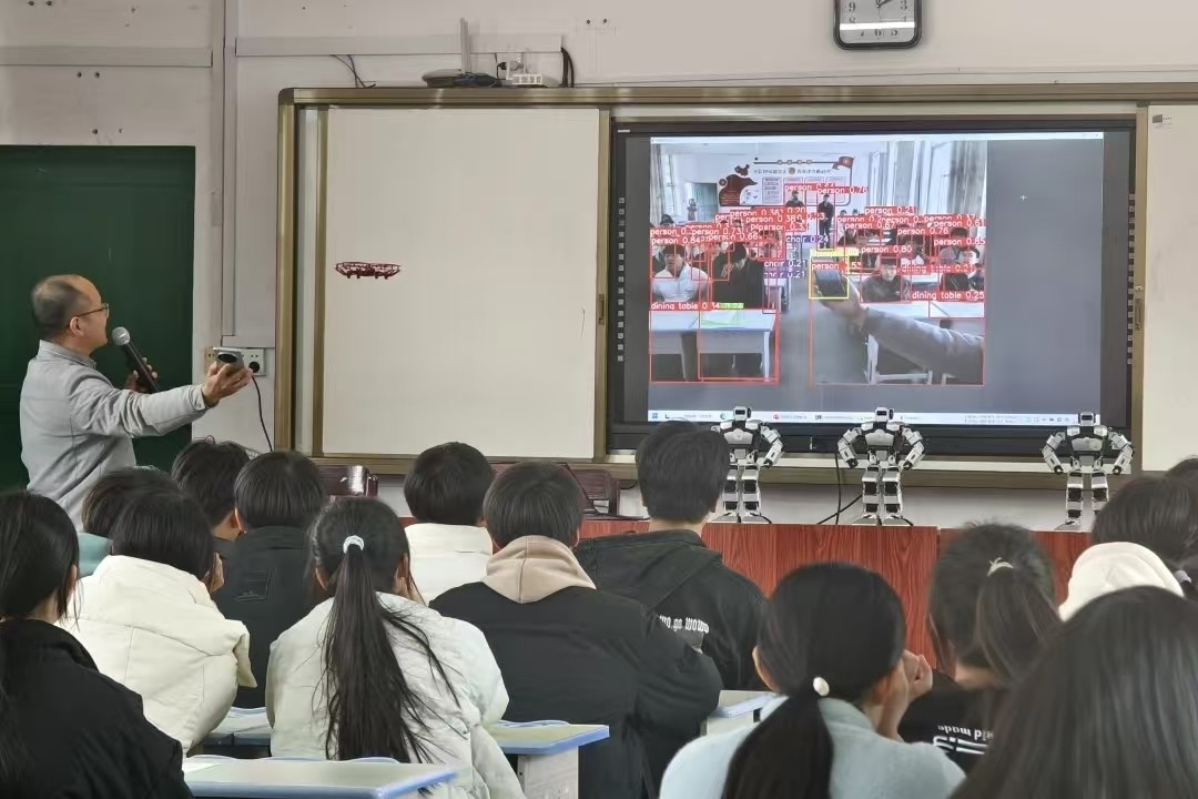 在融水和睦鎮(zhèn)初級(jí)中學(xué)的教室里,一場別開生面的科普之旅正熱烈上演。第一課《身邊的人工智能》,趙子航老師用生動(dòng)的語言,將AI基礎(chǔ)概念娓娓道來,從無人機(jī)的起飛到精準(zhǔn)降落,每一個(gè)動(dòng)作背后都蘊(yùn)含著AI的智慧。同學(xué)們的好奇心被徹底點(diǎn)燃,他們踴躍提問,趙老師耐心解答,現(xiàn)場洋溢著探索的激情與求知的渴望。