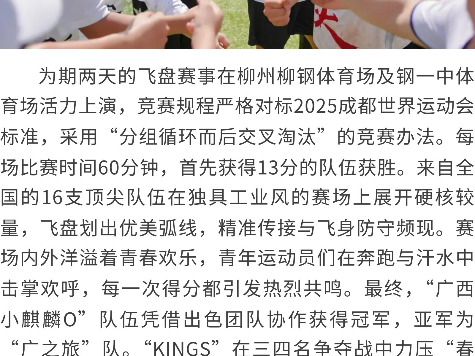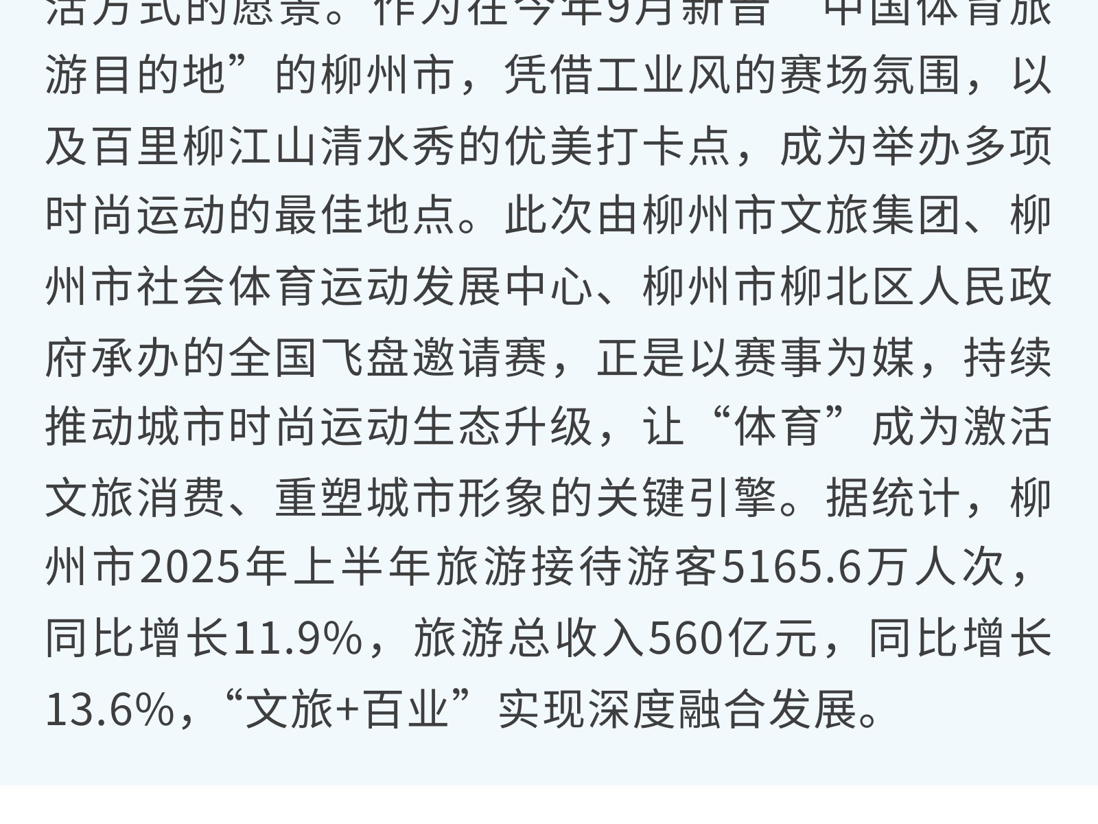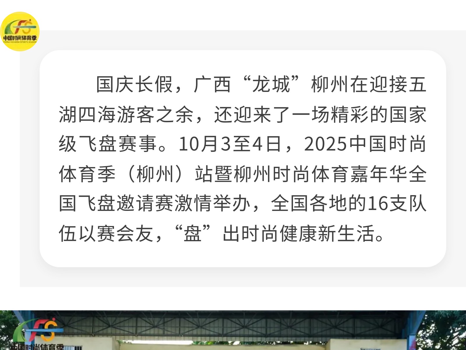 “盤”出時尚健康新生活,廣西柳州承辦國家級飛盤賽 發(fā)布時間:2025年10月05日 17時來源:本站原創(chuàng)瀏覽:9 人次